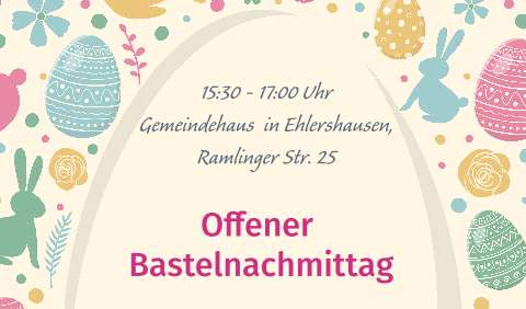 Los geht es mit den Sechs- bis Zehnjährigen am Mittwoch, den 26. März. Die Drei- bis Sechjährigen sind dann drei Wochen später, am 16. April ins Gemeindehaus eingeladen, um Osterbasteleien herzustellen.